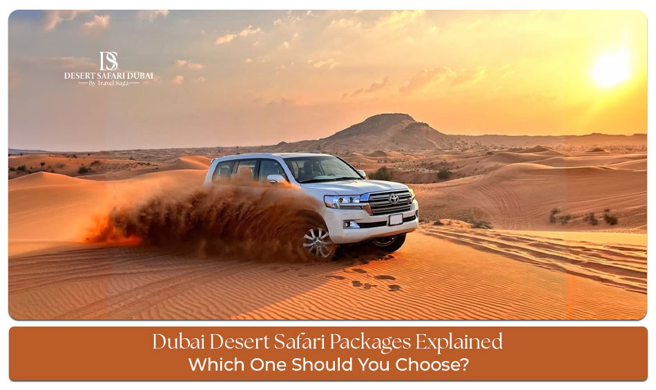 Dubai Desert Safari Packages include morning safaris, evening safaris, overnight safaris, and heritage safaris, each offering unique experiences such as dune bashing, stargazing, and cultural immersion.