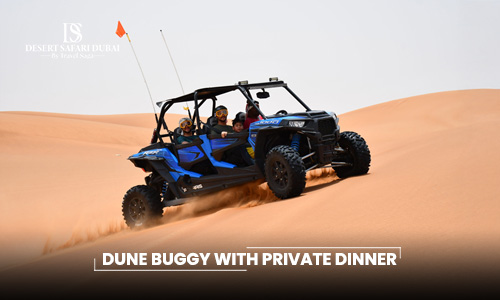 The dune buggy with private dinner will cost you 3000 AED to 3840 AED per person. The prices vary according to the package you choose.